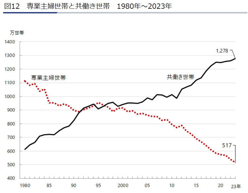 専業主婦世帯と共働き世帯 1980年~2023年より